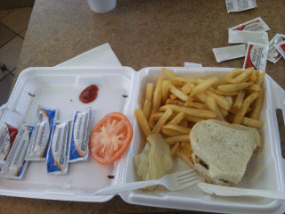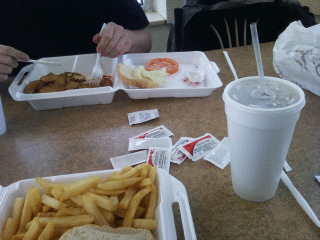 Nun haben wir ein Drittel der Arbeitszeit hinter uns. Heute haben wir einiges geschafft. Die Datenbank läuft und die Kalibrierung auch. Der andere Tester ist auch fertig verdrahtet. Morgen gehts dort weiter. D.h. dass es von dort nichts weiter zu berichten gibt. Also sprechen wir über die andere wichtige Sache: Sprechen wir übers Essen. Frühstück war wieder gut, da selbst gemacht. Leider wird das Toastbrot schon knapp. Dafür war die Butter weich, nachdem sie kurz auf der Heizung lag. Zum Mittag sind wir heute alleine gefahren. Dazu sind wir auf die Hauptstraße und dann immer geradeaus bis in den nächsten Ort (jedenfalls sah es wie ein Ort aus. Dort versprach man an einem Eckladen „Chicken”. Es war dann ein kleiner Laden ohne Kundschaft. Nach einer zähen Bestellung (wie im Film „Jens und Enrico allein in Detroit”) haben wir eine Packung mit einem Hähnchensandwich und Unmengen Pommes und Ketchuptüten bekommen. Das Sandwich bestand aus einer dicken Weißbrotscheibe, Käse, eine dicke gegrillte Hähnchenscheibe, noch einer Weißbrotscheibe und ein paar Blatt Salat. Dazu gabs einen Becher Pepsi mit viel Eis drin. Wir haben es nicht geschafft, wurden aber beim Rausgehen gefragt, ob man uns den Colabecher nachfüllen kann. Ich bin bald geplatzt!