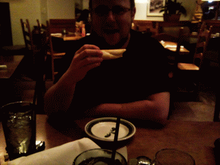 Heute Abend nach der Arbeit halb 9 sind wir einkaufen gefahren. Wir brauchten neues Toastbrot und Spülmittel. Um dem Einkauf einen besonderen Kick zu geben, haben wir an einer Selbstbedienungskasse bezahlt. Enrico hat es soweit gebracht, dass der Automat gestreikt hat und der Service gerufen wurde. Wir haben einfach nicht das gemacht, was der Automat von uns wollte. Aber er hat ja auch nicht deutsch gesprochen. Danach mussten wir ja wieder was Essen. Dazu ist uns beim Überqueren des Parkplatzes ein Restaurant „Olive Garden” aufgefallen, was sich richtigerweise als Italiener rausgestellt hat. Nachdem wir platziert wurden, stand sofort ein Kellner (der sich später als Chef herausstellte) mit einer Flasche Rotwein am Tisch und erzählte uns irgendwas. Da Enrico gefahren ist, habe ich mich breitschlagen lassen, ihn zu probieren. War ganz gut. Nach einer langen Suche in der Karte habe ich Spagetti mit Fleischsoße genommen, die durch den Kellner mit Überredungskunst freundlich um drei Fleischbälle erweitert wurde. Enrico hat sich bei seiner Lasagne zu einem Salat mit Hähnchenstreifen verleiten lassen, was auch zu einer absoluten Fülle geführt hat. Dazu gab es zwei große Gläser Wasser mit Eis und ein paar Weißbrotsticks (warm mit Knoblauch bestrichen). -satt-