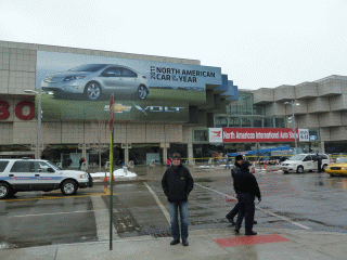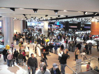 Auf der Messe haben wir unsere Jacken abgegeben, die Karten am Automaten gekauft und Patrick getroffen. Von der Messe selbst hätte ich mir etwas mehr erwartet. Gut, man hat dort große und manch neue Autos gesehen. Ich denke aber, dass bei Messen in Deutschland mehr los ist. Hier sieht man kaum Standbetreuer, es gibt kaum Infomaterial und die Amis laufen z.T. in Trainingssachen rum. Es gibt auch keine Pausenecken und nur ein/zwei kleine Verkaufsstände mit einem Snack. Irgendwie scheint der Messe keine Bedeutung weiter angemessen zu werden. Wir sind jedenfalls überall mal vorbei und ich habe ca. 200 Fotos für Robert geschossen.