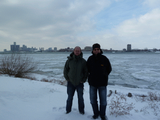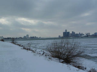 Wir haben unsere Autos geholt und sind auf die Insel "Belle Isle" gefahren, die genau zwischen USA und Kanada liegt. Sie ist eine Erholungsinsel, recht groß, momentan total verschneit und direkt an Downtown. Wir hatten von dort einen wunderbaren Blick auf die Skyline von Detroit und nach Kanada. Wir sind die gesamte Insel abgefahren und haben es uns nicht nehmen lassen, zum Schluss auf einen etwas längeren Steg zu gehen. Der Weg dahin führte durch tiefen Schnee und auf dem Steg war es extrem stürmisch, so dass sich die -3°C wie -25°C angefühlt haben. Aber es war schön.