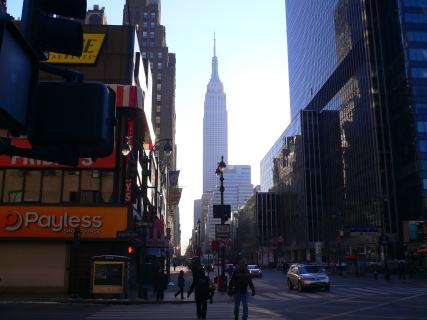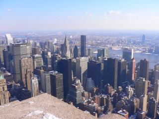 Der Name Sonntag hat dem Tag alle Ehre gemacht. Wir haben um 8 gefrühstückt. Es gab feste Brötchen, Marmelade, Kornflakes, Obst, Kaffee und O-Saft. Einfach gut! Gegen 9 sind wir zum Empire State Building aufgebrochen. Es war nicht so weit, sodass wir halb 10 dort waren. Aufgrund unserer Gutscheine gab es ein Problem beim Skyride, was sich aber aus der Welt schaffen ließ. Der Skyride selber war sehr gut. Wir saßen auf einer Plattform, die sich wie beim Flug mitbewegt hat. Echt gut. Danach gings hoch zur Aussichtsplattform. Dort hat es extrem gezogen, aber wir hatten eine Traumsicht. Wir haben es ja auch verdient.