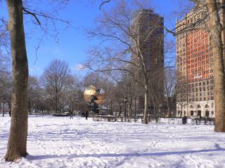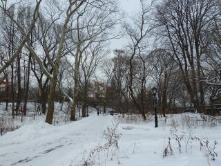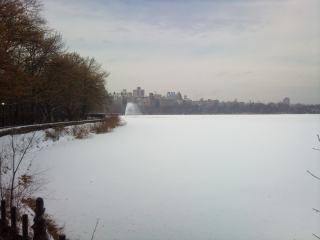 Auf der Ostseite haben wir uns dann getrennt. Enrico ist zum "Museum American Indian" gefahren und ich bin im Park noch etwas weiter und habe das "Jackie Onassis Reservoir", einen großen, zugefrorenen See bestaunt. Dabei ist sogar die Sonne wieder raus gekommen und die Wolken sind verschwunden. Nichts mehr zu sehen von den Schneewolken vom Vormittag.