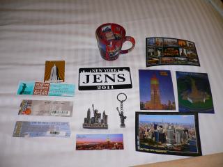 Heute früh waren die Reiseunterlagen in der Firma. Sie beinhalten Gutscheine für alle Sachen in New York. Langsam kommt alles zusammen. Dann kanns ja am Sonntag losgehen. Start ist 7:52 in Weimar mit Umsteigen in Erfurt und Frankfurt. | |