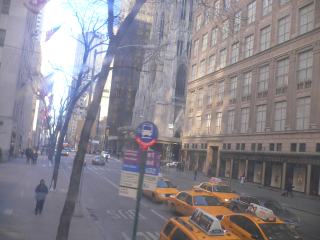 Wir sind nach dem Auftauen gegen 1 wieder los. An der 8 Ave/36th sind wir an einem Laden vorbei gekommen, wo viel Betrieb drin war und anscheinend was zu Essen angeboten wurde. Da sind wir rein. Im Laden gab es jede Menge Theken mit fertigen Salaten, aber auch warmes Buffet. Alles nach Gewicht für den gleichen Preis. Hier hab ich Nudeln mit Hackfleischsoße gegessen. Enrico hat sich ein Sandwich geholt. Danach gings zur 8 Ave/52th mit der Metro, wo wir dann aber fast eine halbe Stunde auf den Bus gewartet haben. Und das bei der Kälte und dem Wind. Es kam zwar noch die Sonne rum, aber richtig geholfen hat sie nicht. Gegen 2 tauchte dann endlich der Bus auf. Der Guide auf der Fahrt durch Uptown rund um den Central Park bis hoch nach Harlem war sehr redselig. Aber wenn im TUI-Katalog steht, dass der Reiseführer deutschsprachig ist, heißt das noch lange nicht, dass die Erklärungen in einer anderen Sprache als Englisch sind. Zum Glück können wir damit umgehen. Wir haben viele Museen gesehen und viel erfahren. Fotos waren leider nicht möglich, da das Plastedach dreckig und verkratzt war. Da sieht der Fotoapparat wesentlich weniger als man selbst. Zurück auf der 42nd Str haben wir im McDonalds einen Kaffee getrunken. Der McDonalds ging über vier Etagen und war ganz anders eingerichtet als gewohnt. War interessant.