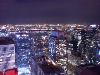 Oben auf der Aussichtsplattform in der 70. Etage gabs einen traumhaften Blick auf das inzwischen nächtliche New York. Auf der Plattform gab es über 3m hohe Glasscheiben mit etwa 10cm Abstand, sodass ich gut fotografieren konnte.