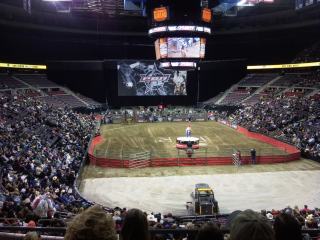 Die Nacht hat es richtig geschneit. Gestern Abend war davon noch nichts zu sehen, und heute früh lagen 10cm. Gegen 5 wurde schon fleißig geschoben (mit Autos, nicht mit der Hand!). Aber für Detroit ist das normal und nicht der Rede wert. Heute Abend war schon wieder alles von der Straße weg. In New York würde das für absolutes Chaos sorgen. Meine Maschine hat es heute gut mit mir gemeint. Zwei Punkte meiner Liste funktionieren schon mal. Hoffentlich tun sie das morgen auch noch. Jetzt bleibt nur noch die Sicherheitstechnik. Aber da brauche ich Unterstützung aus Deutschland. Und die gibts erst am Montag. Zum Mittag hat mich Daniell Wagner zu Thailänder eingeladen. Gemüse mit Huhn und mittelscharfer Soße. War gut. Und dazu gabs Tee. Gegen 6 habe ich dann Schluss gemacht. Ich bin zum ca. 800m entfernten PALACE gelaufen und habe mir die „Professional Bull Riders” angeschaut. Zuerst habe ich dort aber was gegessen (Pizza) und bin dann auf meinen Platz. Ich hatte gute Sicht. Begonnen hat das alles mit einer Einlage der Nationalgarde, die irgendwas ins Publikum geschmissen hat. Dann gabs die Nationalhymne und dann die Vorstellung der Rodeos. Und dann gings mit dem Bullenreiten los.